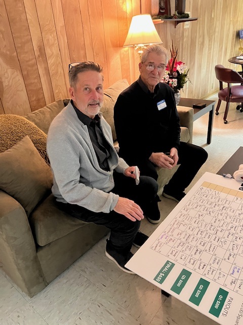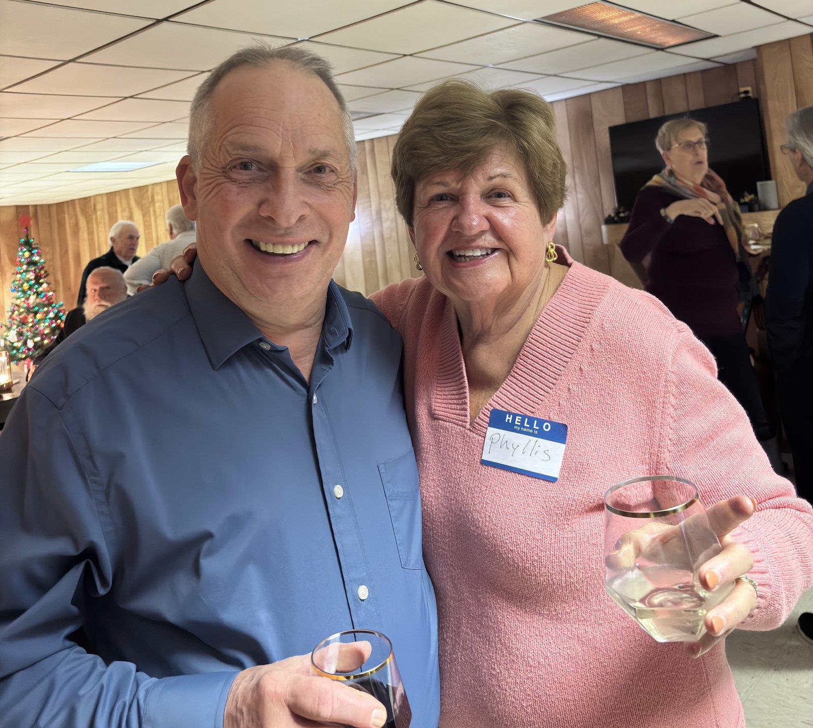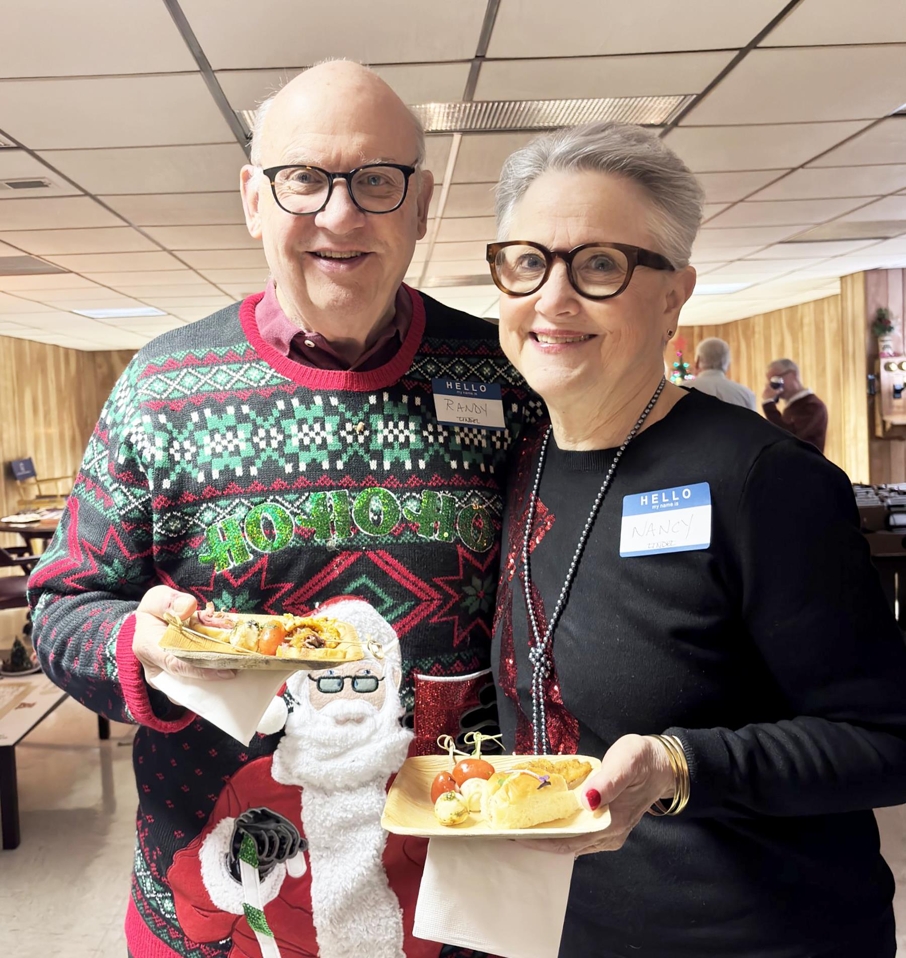 offered their lovely home for a January party, and it turned out great! About 64 partygoers, Rotarians and their spouses, girl and boyfriends, gathered for delicious appetizers and numerous yummy desserts at the Hall’s roomy and comfortable home.In fact, there were so many desserts brought by Rotary members that the pool table in the basement was heavily laden with cookies, pies, cakes, and petit fours. All the yummy leftovers went to Safe Harbor Saturday morning for the residents who were stuck inside all day, due to the weather.