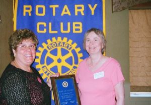Mary Lou Enochs (left) is presented a plaque by Chris McCawley, chair of the Honorary Rotarian Committee, in honor of Mary Lou's being named Honorary Rotarian